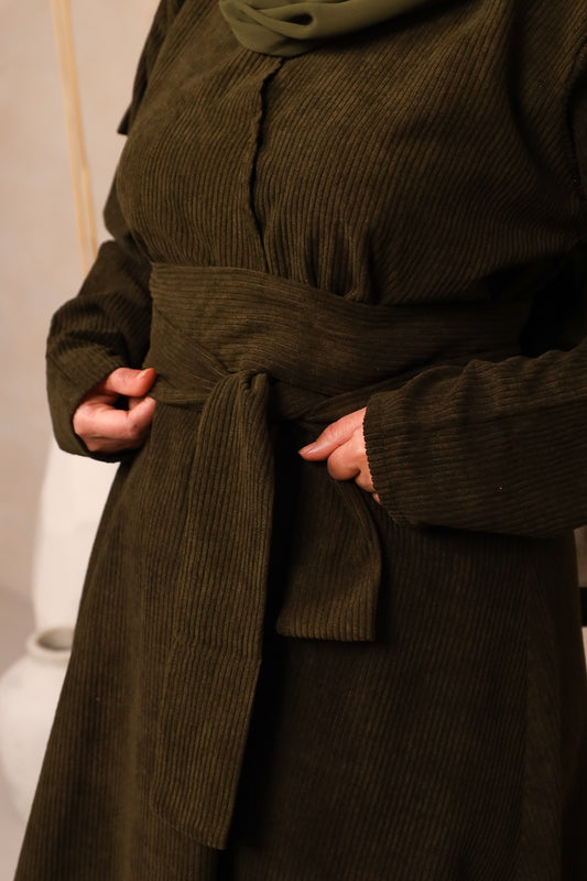 Winter Amal Aline Corduroy Abaya Khaki Green