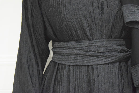 Ava Puff Sleeve textured Knit Abaya Dress in Black