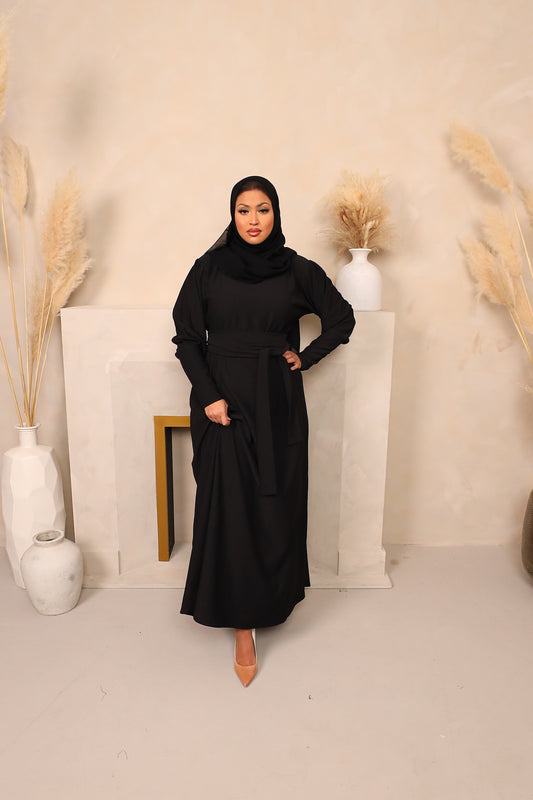Baria Bubble Sleeve Abaya Jersey knit in Black