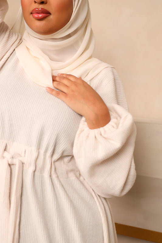 Baria Bubble Sleeve Abaya Jersey knit Ecru