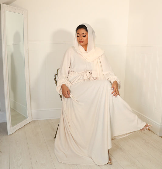 Baria Bubble Sleeve Abaya Jersey knit: Ecru
