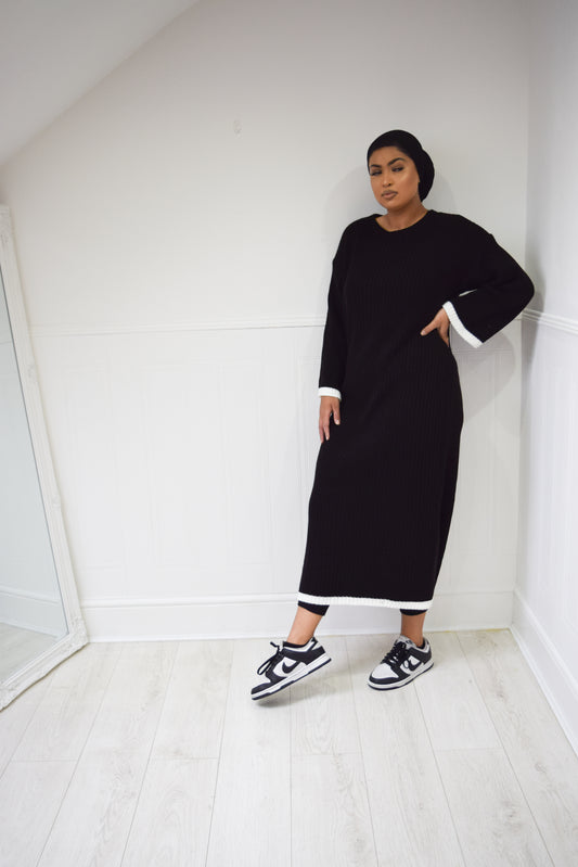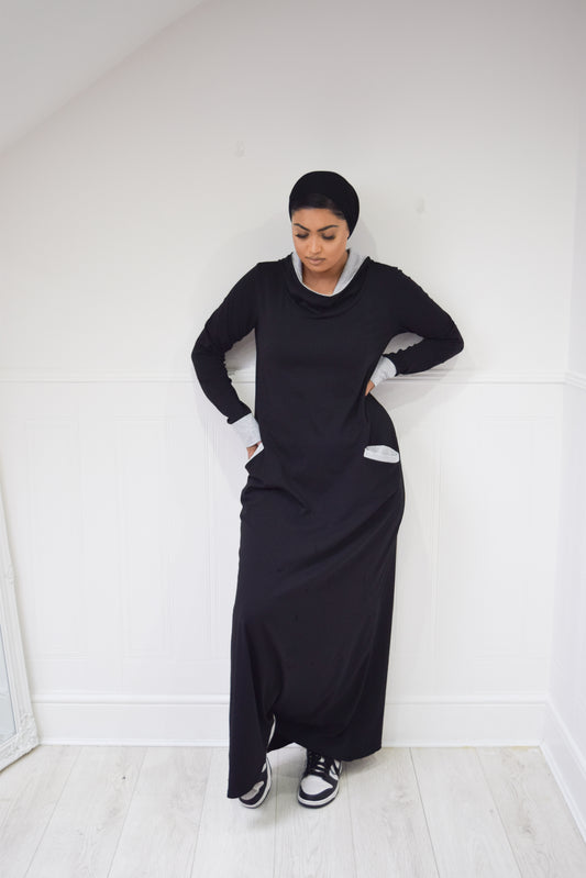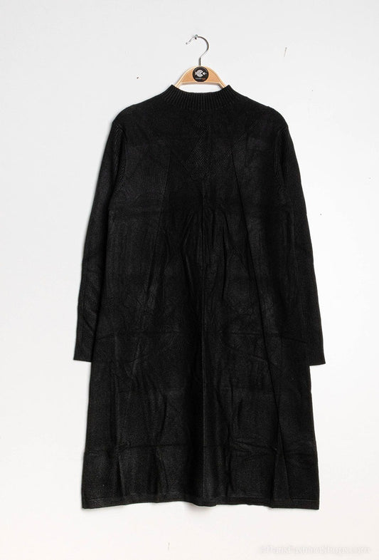 Modest Maxi A-line Jacquard semi shirt dress Black
