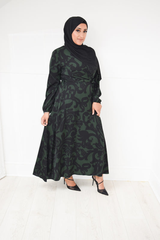 Modest Maxi A-line Jacquard semi shirt dress Forest Green