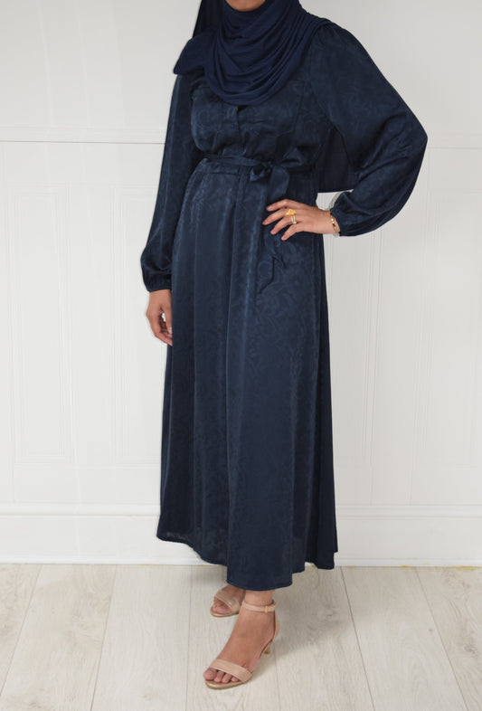 Modest Maxi A-line Jacquard semi shirt dress Navy