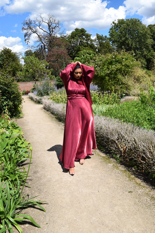 Amalia Wrap Maroon Shimmer Flare Abaya