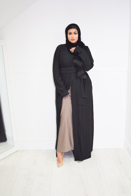 Zaiba textured Open A-line Abaya Jacket with pockets in Black