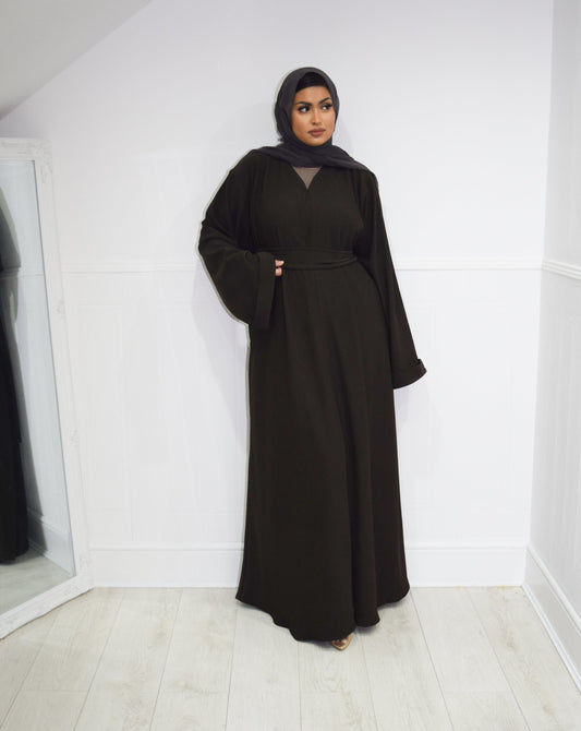 Hannah textured ribbed Open A-line kimono Abaya Jacket with pockets in Espresso
