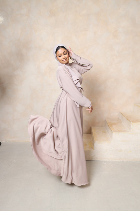 Habiba zip flare abaya Pebble in Fine Crinkle