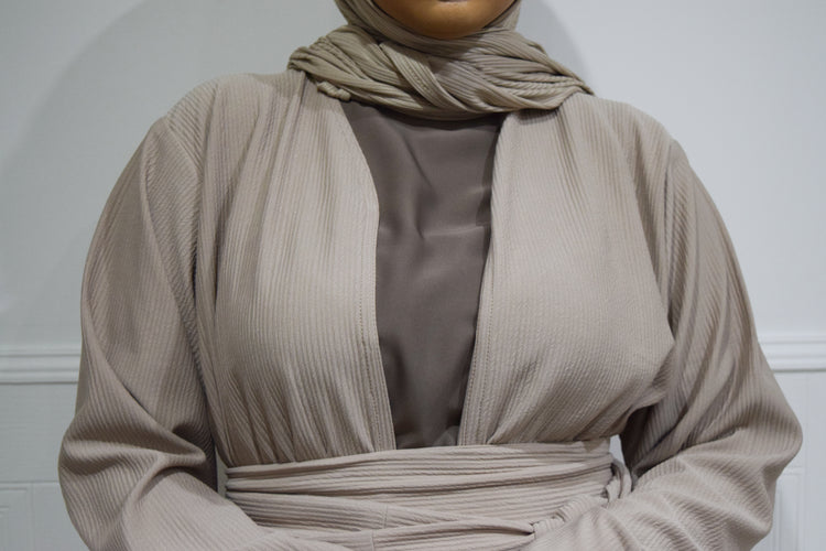 Hannah textured ribbed Open A-line kimono Abaya Jacket with pockets in Fawn