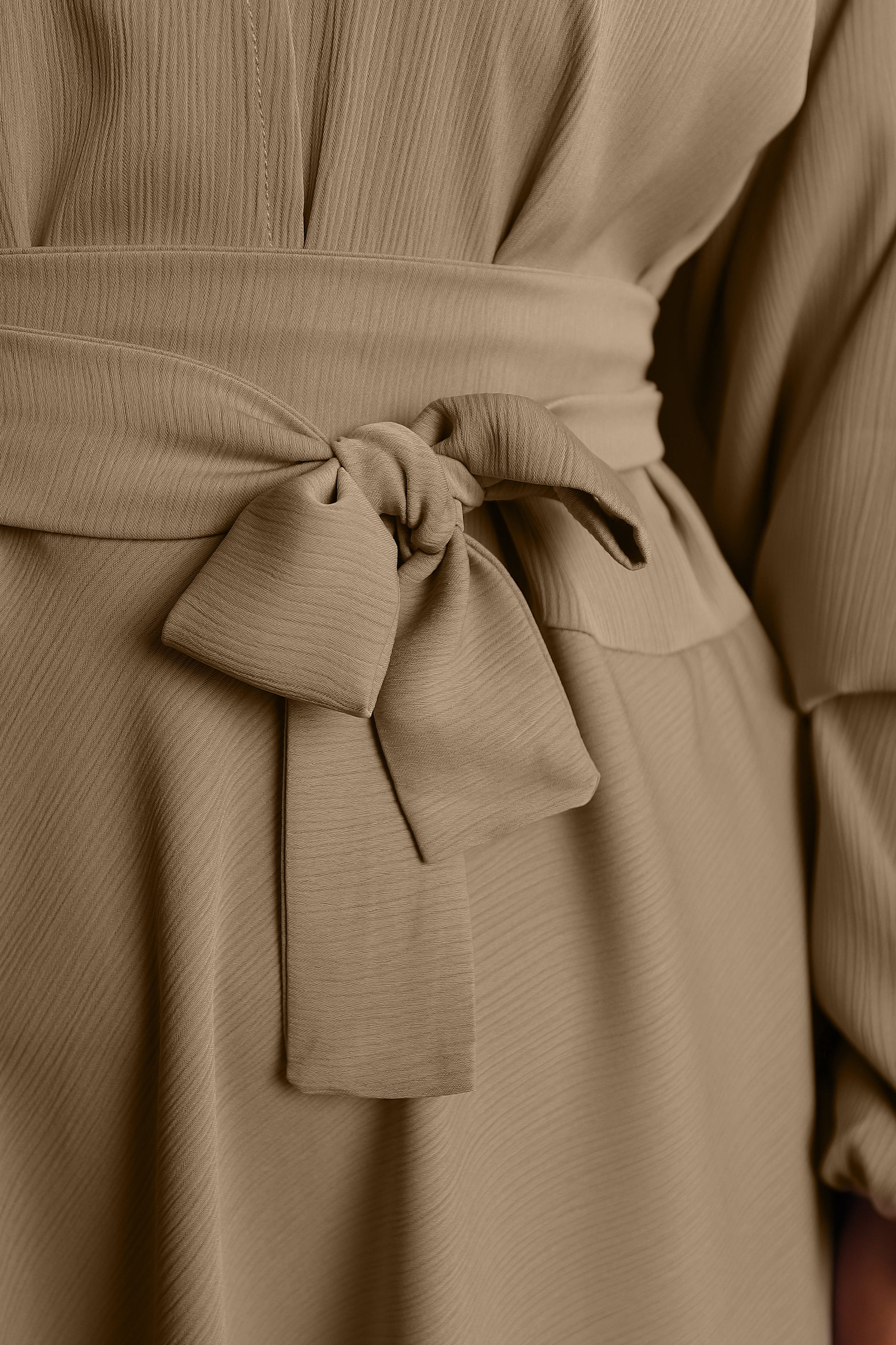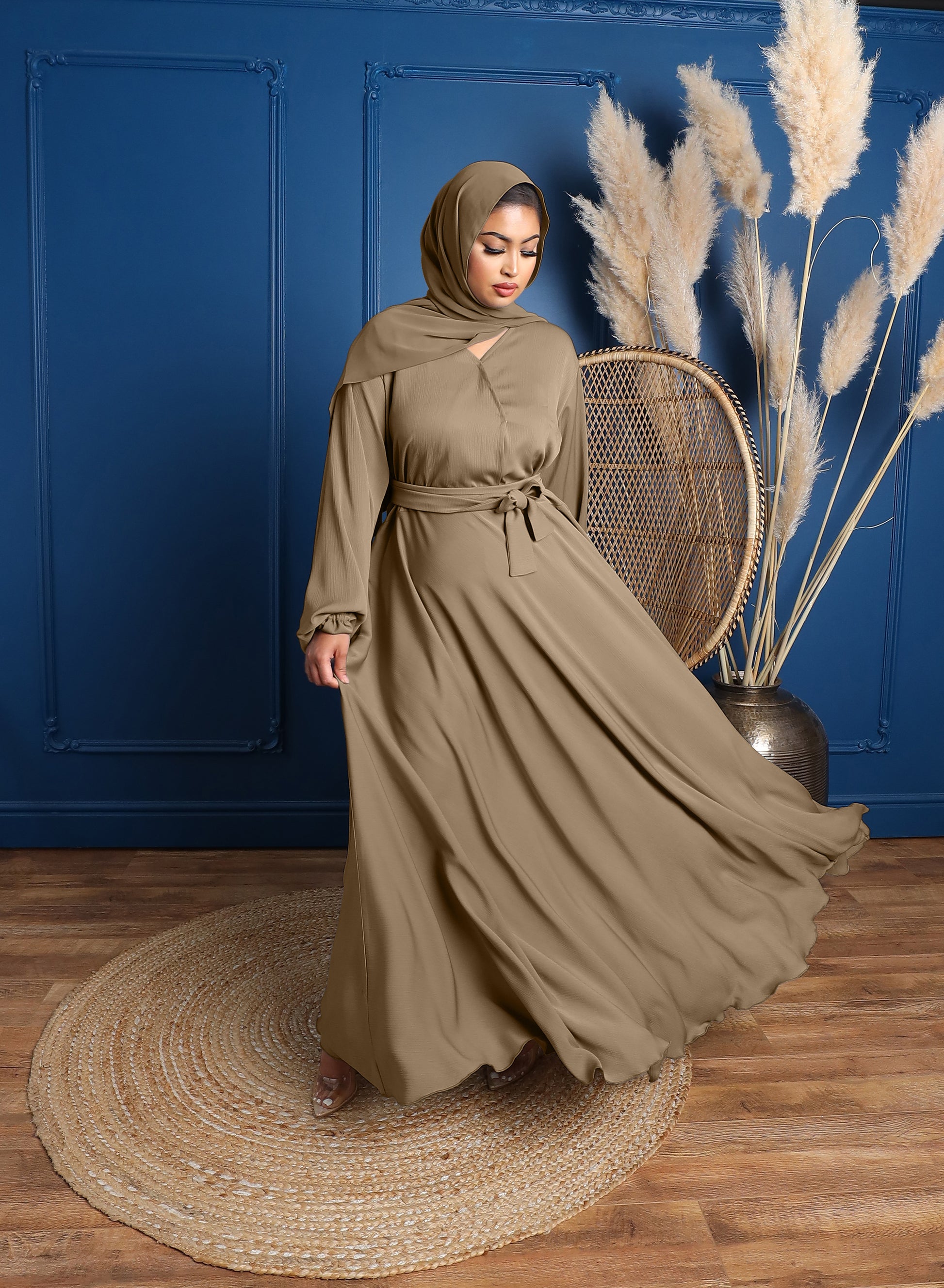 Amal wrap flare abaya Taupe in Fine Crinkle