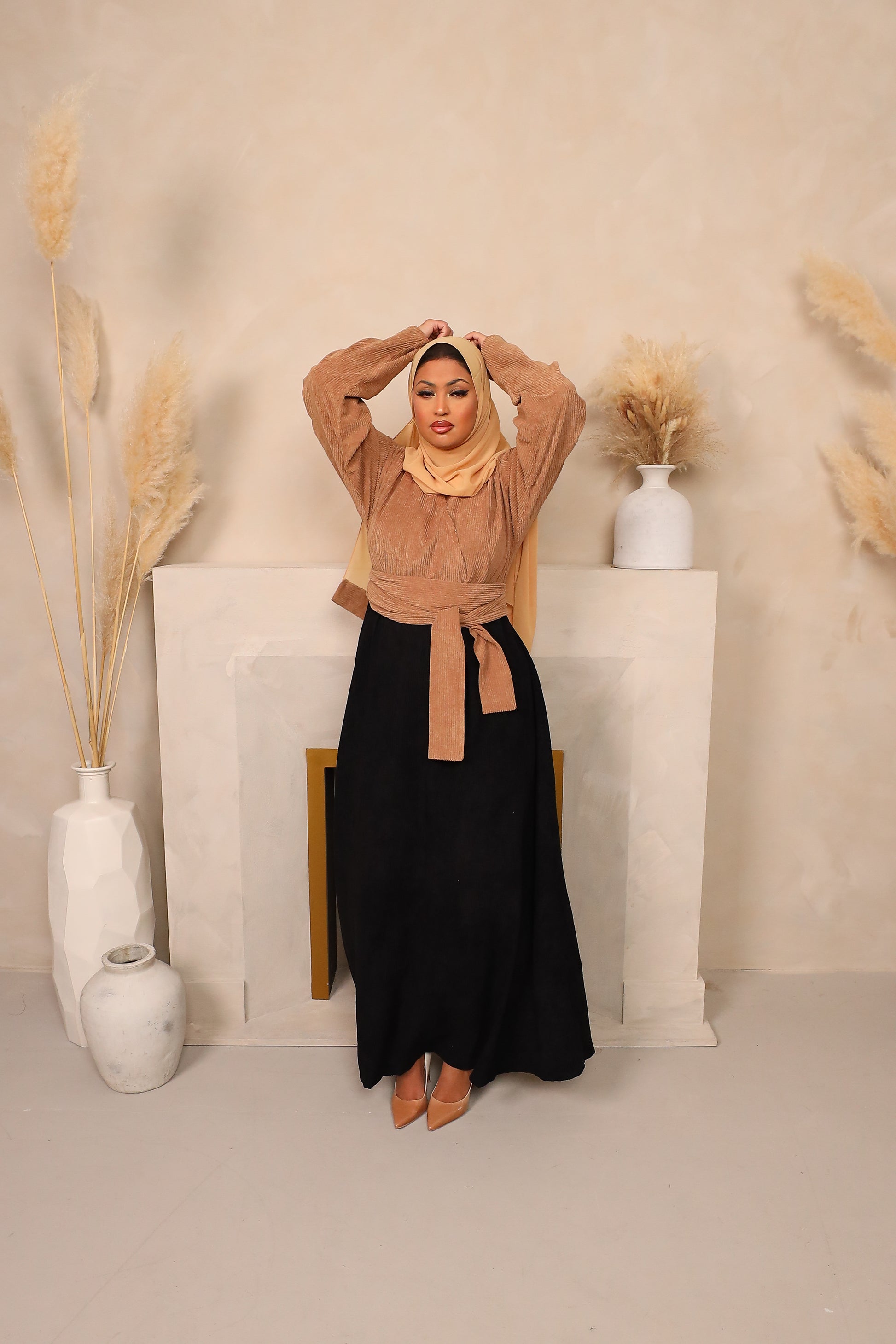 Winter Amal Aline Corduroy Abaya Beige & Black