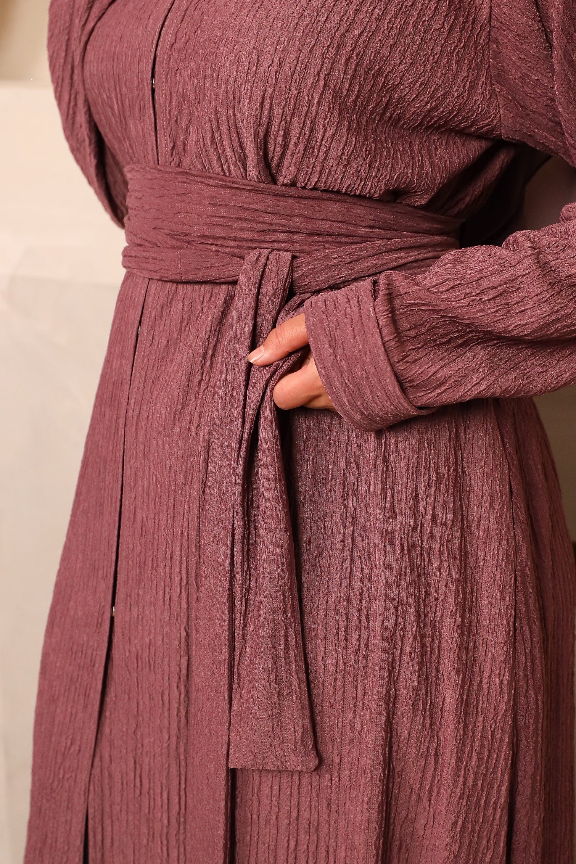 New to Roohaya is this stunning textured fabric in an open Jacket cardigan Abaya, with pockets!